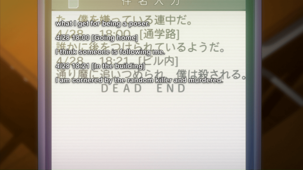 As described above, the diary tells you your future. It tells you where the danger is, so you can go a different way or choose a different option that won’t harm you. It even tells you when you will die, marking it with a ‘dead end.’ This dead end is inevitable — unless you change it. If you continue your current plans or route, you will certainly die, but this gives you an opportunity to change your fate.